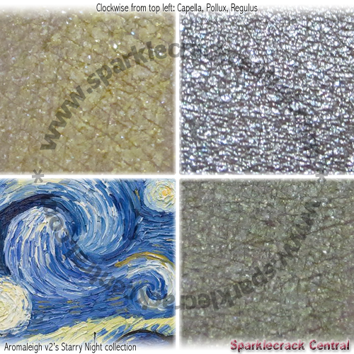 Polaris and Sirius are almost warm/cool complements to each other, both with a silver-white base and differing shimmer effects.