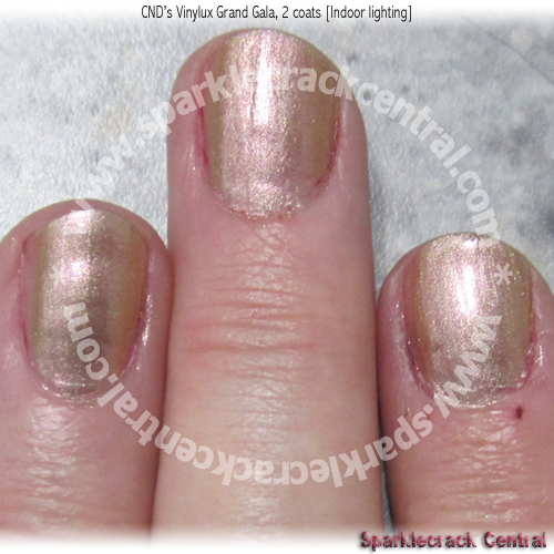 This color is a bit more on the sheer side. It isn’t totally sheer, like Dazzling Dance; but it took me more coats to get full opacity (and for the pink duochrome to really show well.) This shade has some similarities with Swanky Silk and Pink Cosmo, but they’re not exact dupes. If you’re looking for subtle duochrome, any of the three shades will work for you. But if you’re looking for the longest-wearing formula that requires the fewest coats for full opacity, Grand Gala is the best choice of the three.