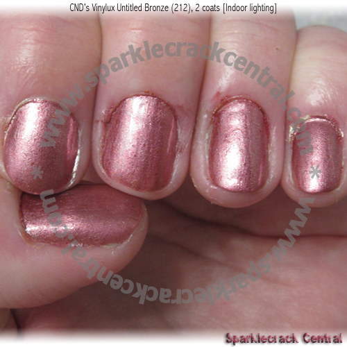 I expected this color to be…more bronze. It’s a slightly bronzed rose shade, so it’s a bit more red than bronze. It’s not what the name might imply, but it’s interesting! It’s also a foil finish, so I get the metallic shimmer without the “smooth mirror finish” requirements that many metallic nail polishes just don’t have, and no problems with visible brushstrokes…but I still get a smoother finish.