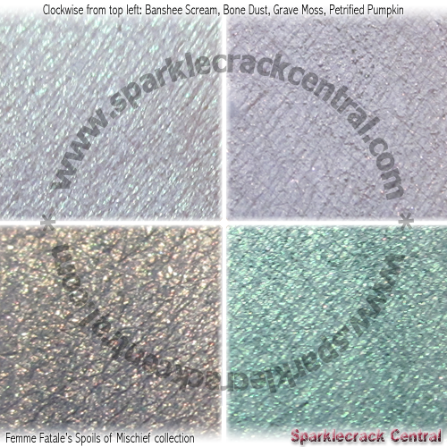 Femme Fatale’s Halloween 2013 release - eight eyeshadows, mostly deeper shades and cooler tones. I bought three of the shades in this collection before fully realizing that they were a collection