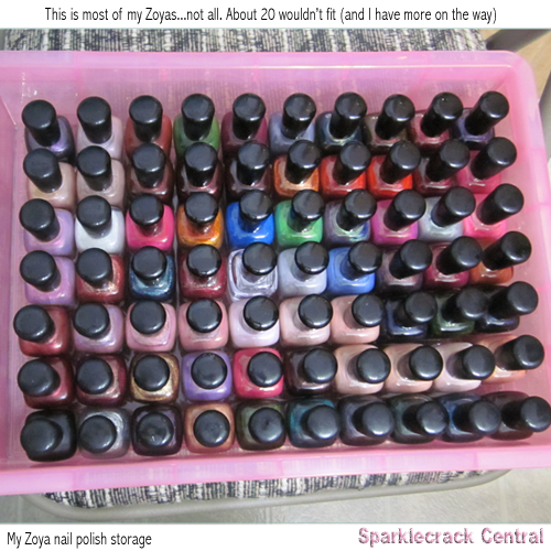 I've been wanting to find a better storage solution for my nail polishes. I keep them in the refrigerator, in the manufacturers' boxes that they came in, grouped by collection and marked on the outside of the box (so that I have a vague idea *which* China Glaze box to grab if I want to use a Tis The Season color, for example.) I wanted a plastic box, with a locking lid and a flat bottom, that would be tall enough to hold my polish bottles, but not much taller. If I could find something that included dividers (for the rows) that would be ideal, just to further prevent breakage; but I knew that eventually those cardboard boxes would break down. They just aren't meant for long-term storage, especially not if they repeatedly go back and forth from cold environment to my countertop. I'd seen other boxes, but nothing that was really good. The dividers were too widely spaced, or the box was too tall, or the bottom had a lip and so the bottles would slide “outward”.