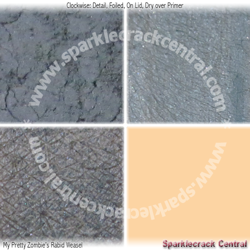 My Pretty Zombie does many things very well. Matte eyeshadows are NOT among those things that it does well, though. Rabid Weasel could be a good neutral-ish beach-bleached blue that would look great on so many skintones…if it wasn't near-hydrophobic, chalky, and temperamental. I can get this to stay in place if I put down a stickey base or use a non-water mixing medium, but if I use regular eye primer, I'm just not happy with the results.