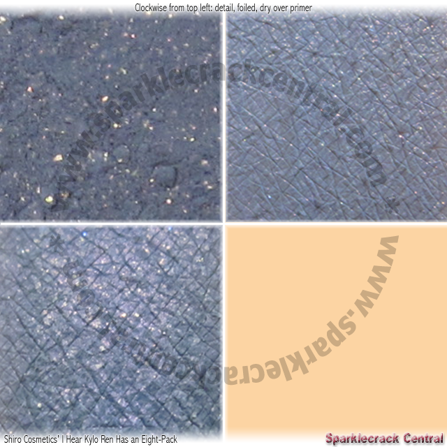 I was expecting something a little bit deeper...but this is a good color on me. It looks like damp ash, and has some purple tones in it. I haven't tried it as a liner yet, but I think it will be interesting with the scattered gold shimmer particles.