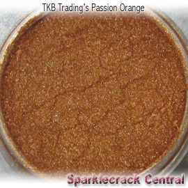 A really great lighter-weight late summer/early autumn shade. It's either a medium tangerine or pumpkin orange, with good color payoff (especially for unblended mica) and a softened shimmer. It's a good “daily” light-makeup look orange, for neutral or warmer skintones, or for folks with slightly cool, mostly neutral coloring.